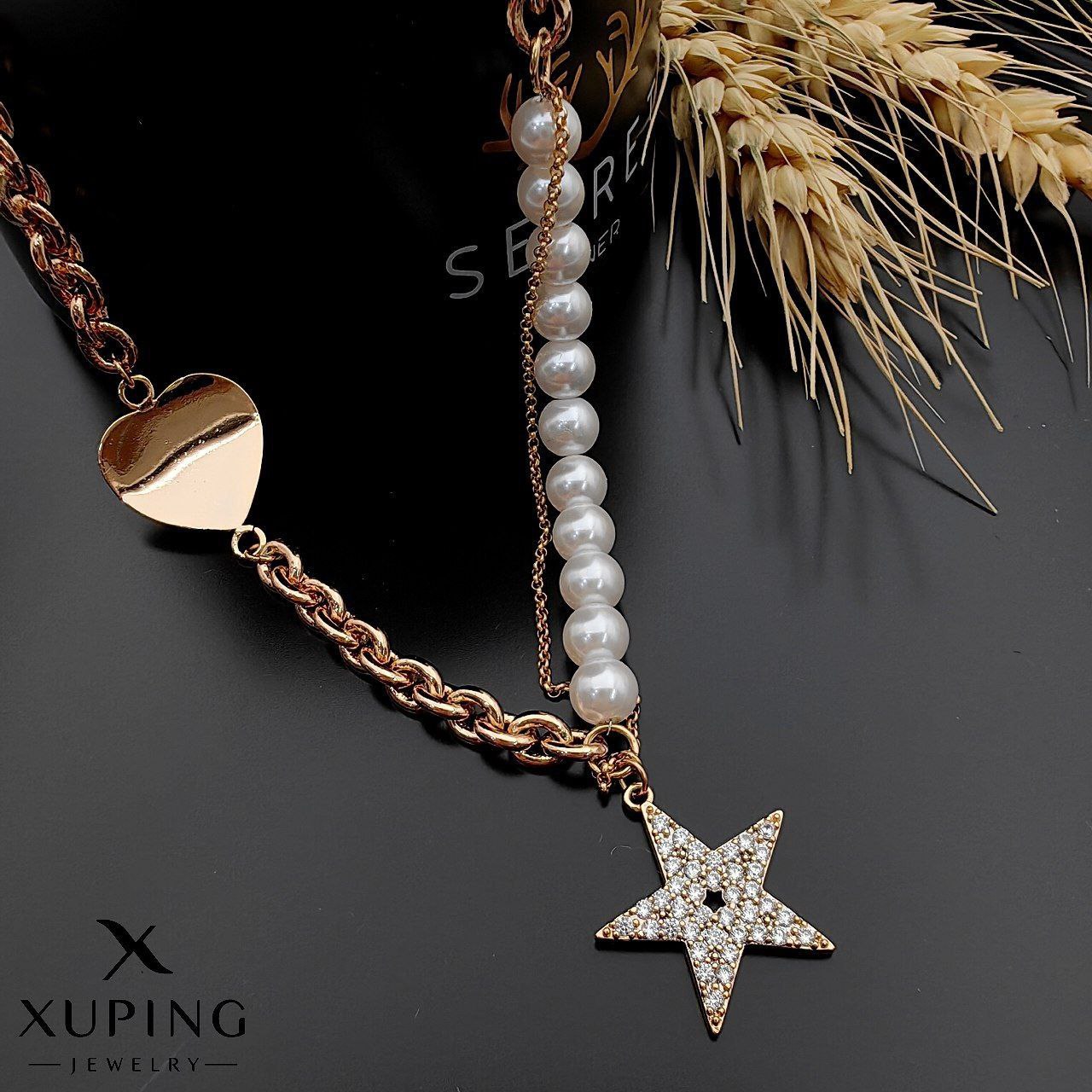 گردنبند مرواریدی پرورشی و زنجیر ابکاری طلا 18 عیار کاملا رنگ ثابت و ضد حساسیت با اویز پلاک نگینی